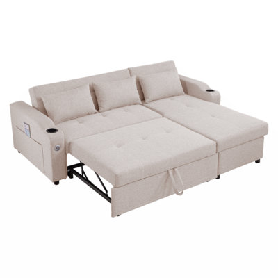 [VIDEO] Provided]84"Adjustable Backrest Sofa Bed,3 In 1 Linen Sleeper With USB Ports & Cup Holders, Pull Out Couch Bed With Storage Chaise,Convertible3-Levels Adjustable Backrest: The backrest of this convertible sofa bed has 3 levels of adjustment,allowing you to unlock more casual posture, Whether reading/working/sleeping, you can find comfortable sitting or resting angle. Latitude Run Fabric: Beige FabricLatitude Run