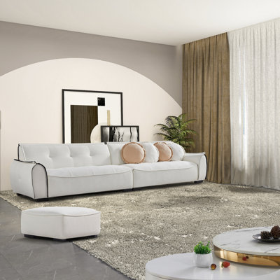 Modern Sofa 137.80" Chenille Sofa,4 Seater Sofa Couch With Ottoman,Comfy Upholstered Sofa For Living RoomA cozy and stylish sofa, perfect for lounging and relaxing. Designed for comfort and durability, this versatile piece adds a touch of elegance to any space. WANDINGT Upholstery Color: WhiteWANDINGT