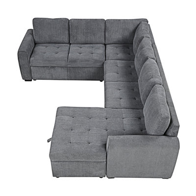 107.5" U-Shaped Sofa Sectional Sofa Pull-Out Sofa Bed With A Storage Chaise Lounge, Charging Devices For Living RoomEasy Convertible - There is a hidden bed underneath. With portable handles and smooth wheels, it can be easily converted into a bed for the overnight guests, making it a space-saving solution. CARLOS FURNITURE Body Fabric: Gray CorduroyCARLOS FURNITURE