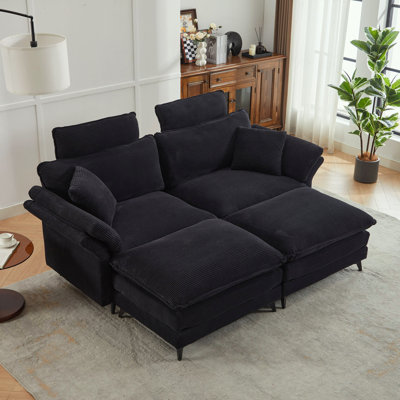 Deep Seat Sectional Sofa, Comfortable Cloud Sofa with Ottomans, loveseat or 4-seater Sofa, 85.8Modern Corduroy Upholstered Sectional Sofa for Living[New] Deep Seat Sectional Sofa, Comfortable Cloud Sofa with Ottomans, loveseat or 4-seater Sofa, 85.8''Modern Corduroy Upholstered Sectional Sofa for Living Room, Apartment, Studio, Office (Beige). Latitude Run Upholstery Color: BlackLatitude Run
