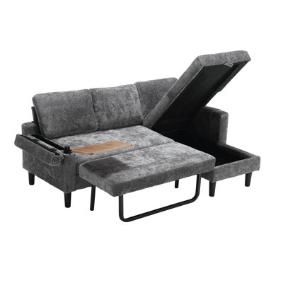 UNITED Sectional Sofa Reversible Sectional Sleeper Sectional Sofa with Storage ChaiseThis sleeper sofa with storage space turns into a spacious bed quickly and easily when you remove the cushion and pull out the bottom frame. We were able to turn a pulled out sofa into a bed in less than a minute, with minimal strength and skill. Kozart Body Fabric: Gray ChenilleKozart