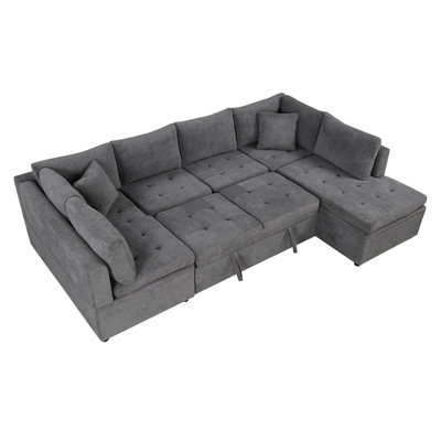 117.3" Oversized Sectional Sofa U- shaped Sofa Couch Pull-out Sofa BedEasy Conversion - Equipped with an advanced pull-out mechanism, this sofa bed effortlessly converts from a sofa to a bed in just a few simple steps, providing a hassle-free solution for extra sleeping space. Spacious Seating - The U-shaped design offers ample seating space, comfortably accommodating larger families orLatitude Run