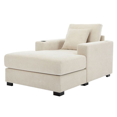 39.7" Oversized Chaise Lounger Modern Upholstered Chaise Lounge Sofa Chair With Outlet And Armrest Cup Holder, Chenille Fabric Sleeper Sofa Couch WithThis modern 39.7-inch armchair lounge chair provides a comfortable place to relax. The spacious plywood frame provides stable and durable support, the armrests on both sides provide a more relaxed lying position, and the waist pillow provides additional comfort for the back. It is equipped with an arm cup holder and aLatitude Run