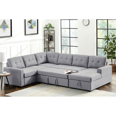 Modern Sofa Selene 115.5" Linen Fabric Sleeper Sectional Sofa With Storage ChaiseA cozy and stylish sofa, perfect for lounging and relaxing. Designed for comfort and durability, this versatile piece adds a touch of elegance to any space. Latitude Run Upholstery Color: Light GrayLatitude Run