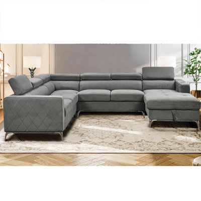 Plata 122 Oversized Sectional Sleeper Sofa Couch with Storage Chaise,U-Shaped 7-Seater Sectional Sofa with Adjustable Headrests for Living RoomThe elegant curves of this modern U-shaped sofa add stylish charm to your living room, and with a spacious multi-seat capacity, it easily carries the laughter of every gathering. Imagine a lazy weekend with friends and family sitting around it, sharing cozy time. The hidden bed under the sofa is its secret weapon, gentOrren Ellis