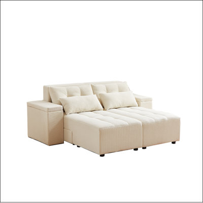 Convertible 3 in 1 Sleeper Sofa and Sectional Sofa with 4 Storage Space for Living RoomThe built-up sofa made of soft corduroy fabric consists of multiple individual modules that can be arranged into a variety of shapes, such as a comfortable bed, a space-saving L-shaped sofa and a regular sofa. Latitude Run Body Fabric: Beige CorduroyLatitude Run
