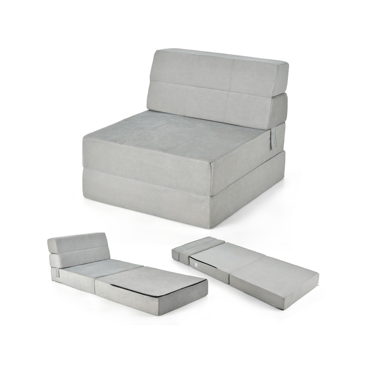 Tri-Fold Sleeper Sofa BedFlocking surface with sponge filling for added comfortVersatile tri-fold design for sofa, lounge, or bedCompact and easy to store for small spacesFixed magic sticks ensure secure setupRemovable, dirt-resistant cover for easy cleaning Tri-Fold Sleeper Sofa BedGoPlus Costway