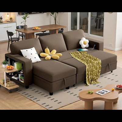 YESHOMY L-Shaped Sofa Bed Convertible Sectional Couch For Living Room With Pull Out Sleeper, Storage Chaise & 2 Built-In Bookcases, BrownAbout this item Comfortable l-shape sofa: The sofa bed is made of high-quality fabric and high-density sponge, which not only has an extremely comfortable touch, but also provides a long-lasting soft experience and is not easy to dent, providing a soft and cozy space for the living room and bedroom to satisfy the pursuHokku Designs