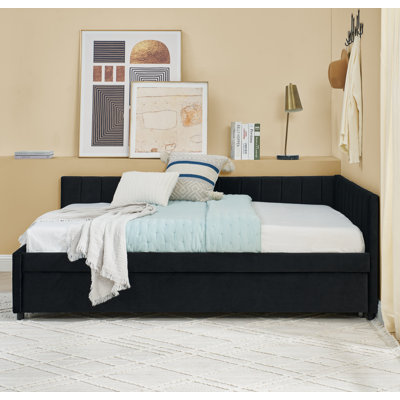 Full Size Daybed with Trundle Upholstered Tufted Sofa Bed, Sofa Bed Frame with Comfortable[Stunning look] Our living room furniture has a stylish vertical stripe pattern on the backrest, exuding a designer aesthetic. Suitable for family rooms, bedrooms, offices and cafes, these pieces enhance the comfort and complexity of any space. Rosdorf Park Color: BlackRosdorf Park