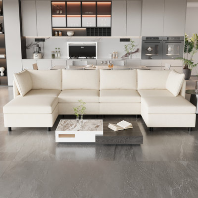Winston Porter Modular Sectional Sofa, Modular U-Shaped Sectional Sofa, Convertible Sectional Sofa Couch 4 Seat Sofa Set Fabric Sectional Couch With OIt is made of skin-friendly triple-proof fabric, which will feel natural and soft when you sit or lie on it. The overall curves are clean and crisp, and it is available in two colors to match perfectly with other furniture. In addition, its convertible design 118 bench allows you to enjoy your free time and relax in yoWinston Porter