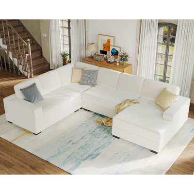 Neoshia 121 Inch Oversized U-Shaped Sectional Sofa, Large Sofa With Corner Seat And Large Chaise, Mordern Sofa For Living RoomGather your friends and family around this modern 121'' U-shaped sectional. Perfect for creating a cozy and inviting atmosphere in your living room, it features soft corduroy upholstery and plush cotton-filled cushions. This three-piece set has sleek square arms and black plastic legs for a contemporary touch, while thLatitude Run