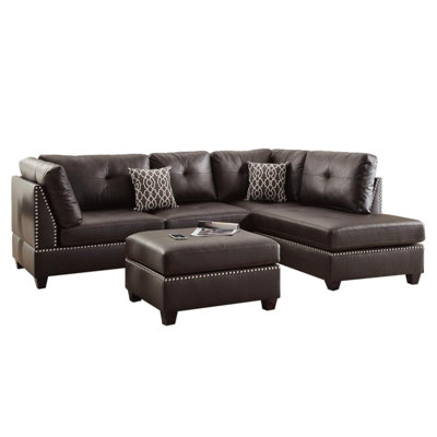 Modern Sofa 3-Pcs Sectional Sofa Bonded Leather Cushion Sofa Chaise Ottoman Reversible Couch PillowsA cozy and stylish sofa, perfect for lounging and relaxing. Designed for comfort and durability, this versatile piece adds a touch of elegance to any space. WANDINGTWANDINGT