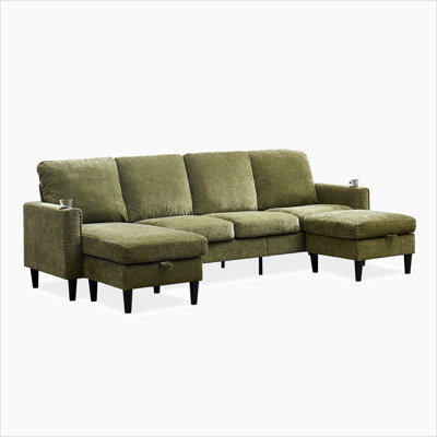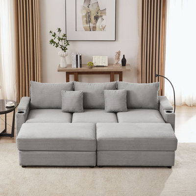 Corduroy 3-Seater Sofa Sectional Sofa Couch with 2 Ottomans Storage Space,Two USB Ports, Two Cup HoldersThis movable ottoman can be positioned anywhere beside the sofa. Use it as a chaise lounge to recline while watching TV or reading, or as a coffee table to hold food trays and magazines.This sofa boasts hidden storage compartments beneath the armrests, providing ample space for easy storage and retrieval. The design alAll-in furniture