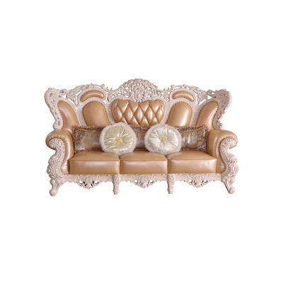 European Luxury Pastoral Style Leather Sofa 100.3'' Genuine Leather Rolled Arm SofaThe wood frame adopts luxurious carving technology, gorgeous luster, and is more three-dimensional. FURNITURE LEISURE, INC.FURNITURE LEISURE, INC.