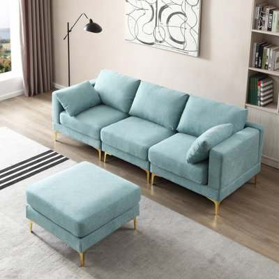 Modern 93.01" Upholstered Sofa Modular Sofa With an Ottoman Comfy Couch Living Room SofaThis sofa is perfect for lounging or entertaining guests. The attention to detail is evident in every aspect, elevating the overall sophistication of the piece. Enhance your living room with this chic and comfortable sofa that brings both style and functionality together seamlessly. GZMWON Fabric: Turquoise FabricGZMWON