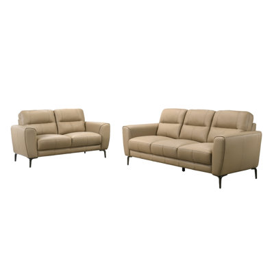 92.52 Inch Genuine Leather Couch 3-Seater Sofa With Tufted Back,Grain Leather Couch With Feather,Comfy Sofa For Living Room, Comfy Sofa Couch With ExtThis leather sofa sofa is made of high-grade leather material, smooth and skin-friendly, adding a touch of luxury to the sofa. Ivy Bronx Upholstery Color: TanIvy Bronx
