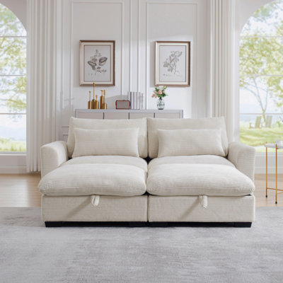 Corduroy Two-Seater Sofa With 2 Storage Footrest, 2 Seater Sectional Deep Seat Sofa,Comfy Couches For Living Room , SofaSophisticated fabric - with its distinct tactile quality, durable corduroy fabric radiates both comfort and cozy, making it the ideal material for settling down and enjoying the sofa's coziness. Hokku Designs Upholstery Color: BeigeHokku Designs