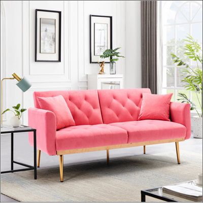 Velvet Sofa , Accent sofa .loveseat sofa with metal feetTapered legs and fabric upholstery of this seating collection create a stylish look that embraces vintage flair and modern living.The thickened cushioning and backrest support your back and lumbar spine, providing extraordinary comfort and great relaxation when resting.The combination of modern home style elements, simHouse of Hampton