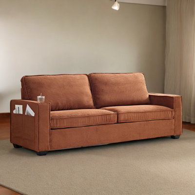 Corduroy Sofa, 87.4 Inch Modern Design Sofa With Cup Holder And Storage Bags, Deep Seat Sofa Couch, Comfy Couch[Multifunctional Storage Bags & Cup Holder] Comfy couch features Storage Bags on two side,allowing you convenient place to put your books anytime, so that you have a place to store them and create a tidy environment . The three-seater sofa is also equipped with built-in cup holders, making relaxation time easier. [OverLatitude Run