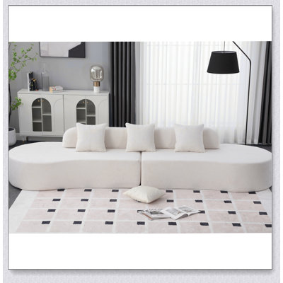 curved combination sofa, terrycloth fabric sofa, minimalist sofaThis "Cloud Comfort" curved cloud sofa features an ergonomic design that provides unparalleled support for your body and luxurious relaxation. Immerse yourself in its luxurious fabric cushions and experience the ultimate comfort, perfect for relaxing time, reading, or movie night. Ivy Bronx Upholstery Color: BeigeIvy Bronx