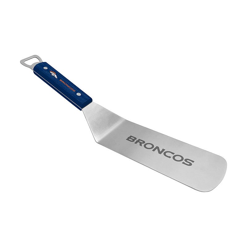 Denver Broncos BBQ Grill Spatula with Bottle Opener, BlueStep up to the grill in true fan form when you have this Denver Broncos BBQ spatula in hand. Step up to the grill in true fan form when you have this Denver Broncos BBQ spatula in hand. Heavy duty stainless steel long blade Beech wood double riveted handle Printed team logo on wood handle Laser engraved wordmark on blaUnbranded