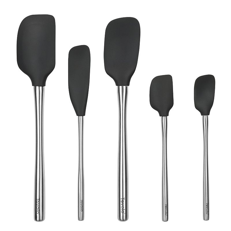 Tovolo Flex-Core Stainless Steel 5-pc. Spatula Set, BlackElevate your cooking experience with Tovolo Flex-Core Stainless Steel 5-pc. Spatula Set. Elevate your cooking experience with Tovolo Flex-Core Stainless Steel 5-pc. Spatula Set. FEATURES Nylon core for added rigidity Jar scraper has a long narrow head for getting into jars Spoonula features angled head to ensure food sTovolo