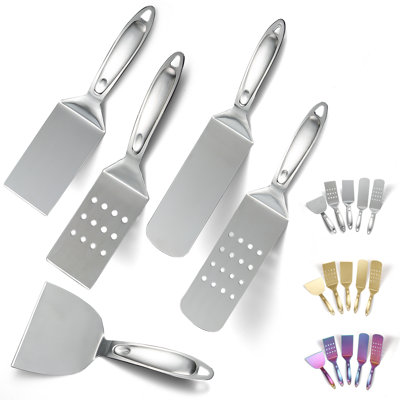 BBQ Grill SpatulaHigh-quality materials: This BBQ tool set is made from durable stainless steel Heat resistance and rust prevention. And it does not contain bisphenol A. Comprehensive toolset: The 5-piece set includes essential grilling tools like 1 long frying shovel, 1 long frying shovel, 1 short frying shovel, and 1 short frying shoASA