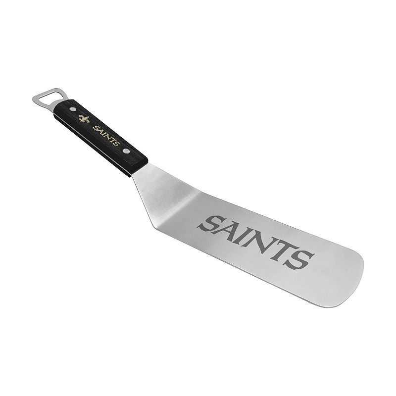 New Orleans Saints BBQ Grill Spatula with Bottle Opener, BlackStep up to the grill in true fan form when you have this New Orleans Saints BBQ spatula in hand. Step up to the grill in true fan form when you have this New Orleans Saints BBQ spatula in hand. Heavy duty stainless steel long blade Beech wood double riveted handle Printed team logo on wood handle Laser engraved wordmarUnbranded