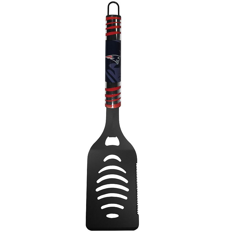 New England Patriots Steel Spatula with Bottle Opener, BlackHave fun grilling with this New England Patriots Steel Spatula with Bottle Opener. Have fun grilling with this New England Patriots Steel Spatula with Bottle Opener. FEATURES Super durable iron spatula with sharp, serrated edges and a handy bottle opener Officially licensedDETAILS 17.5"H x 1.25"W Steel Hand wash ImportNFL