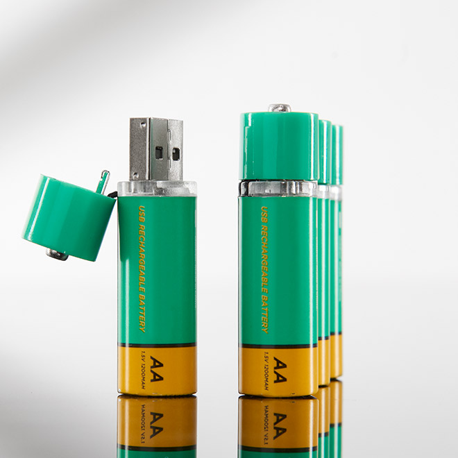 AA USB Rechargeable Batteries (Set of 4)With AA USB Rechargeable Batteries, you'll never have to buy disposable AA batteries again. Each one has a built-in USB jack. Just plug them into a USB port to charge. Each battery can be recharged over 1,000 times. Great for remote controls, flashlights, toys and more. Includes 4 batteries. AA USB Rechargeable BatteriMPOWERD
