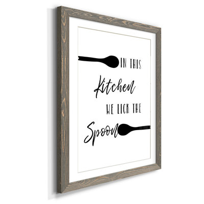 Lick the Spoon - Picture Frame Textual Art Print on PaperReady to hang framed in distressed wood and available in an array of sizes and colors each piece is joined and assembled by hand and comes ready to hang beveled matte board plexiglass covering ready to hang, solid wood frame, face resistant giclee printing. Trinx Frame Color: Gray, Size: 44" H x 31" W x 1" DTrinx