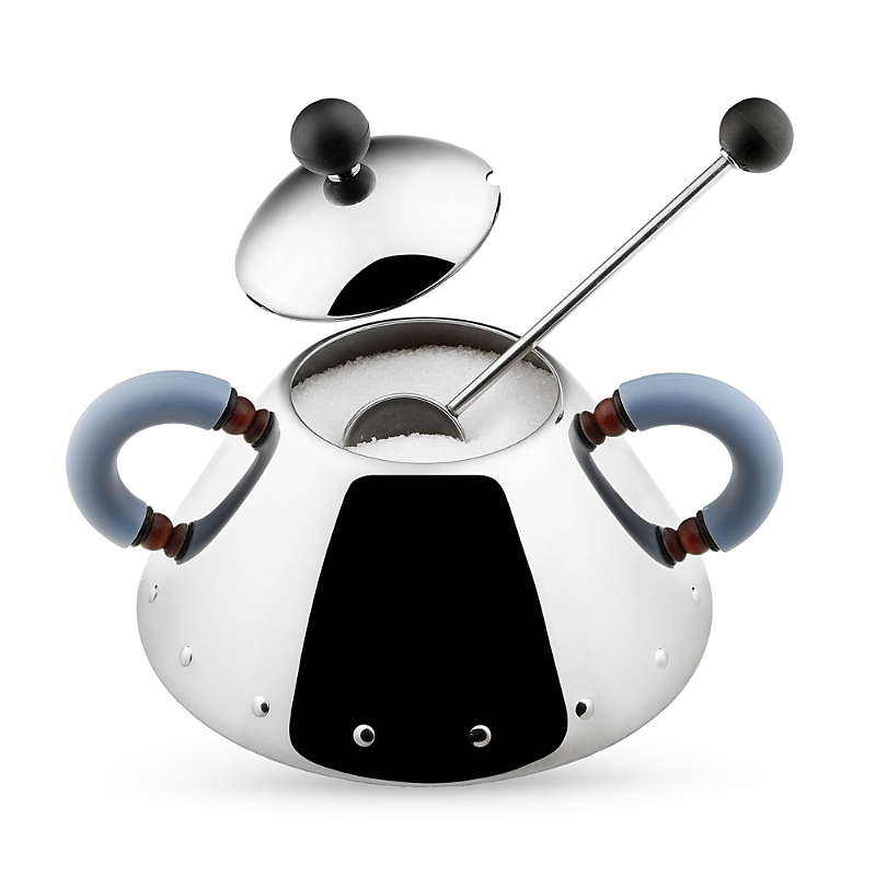 Michael Graves for Alessi Sugar Bowl And Spoon - Size - OSThis sugar bowl with spoon in polished steel with light blue handles and black knob looks adorable when paired with matching creamer and teapot.Alessi