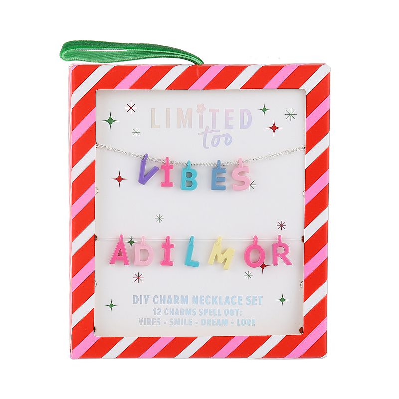 Girls Limited Too Holiday DIY Charm Necklace Box Set, Girl's, Letter SetShe'll be prepared for the holidays with this girls' Limited Too holiday DIY charm necklace box set. She'll be prepared for the holidays with this girls' Limited Too holiday DIY charm necklace box set. FEATURES Includes chain necklace with 8 charms or 12 charm letters Clasp: lobster-claw Packaging: boxedDETAILS Metal,Limited Too