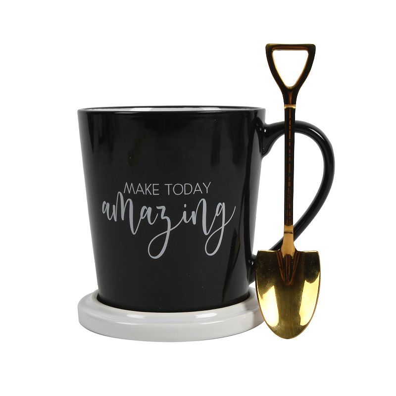 New View Gifts & Accessories Planter Mug & Shovel Spoon Set, BlackFeaturing an inspiring message and a nifty gold-tone shovel-shaped spoon, this versatile mug set can be used to enjoy your favorite beverage or as a planter for a houseplant. Featuring an inspiring message and a nifty gold-tone shovel-shaped spoon, this versatile mug set can be used to enjoy your favorite beverage or aNew View Gifts & Accessories