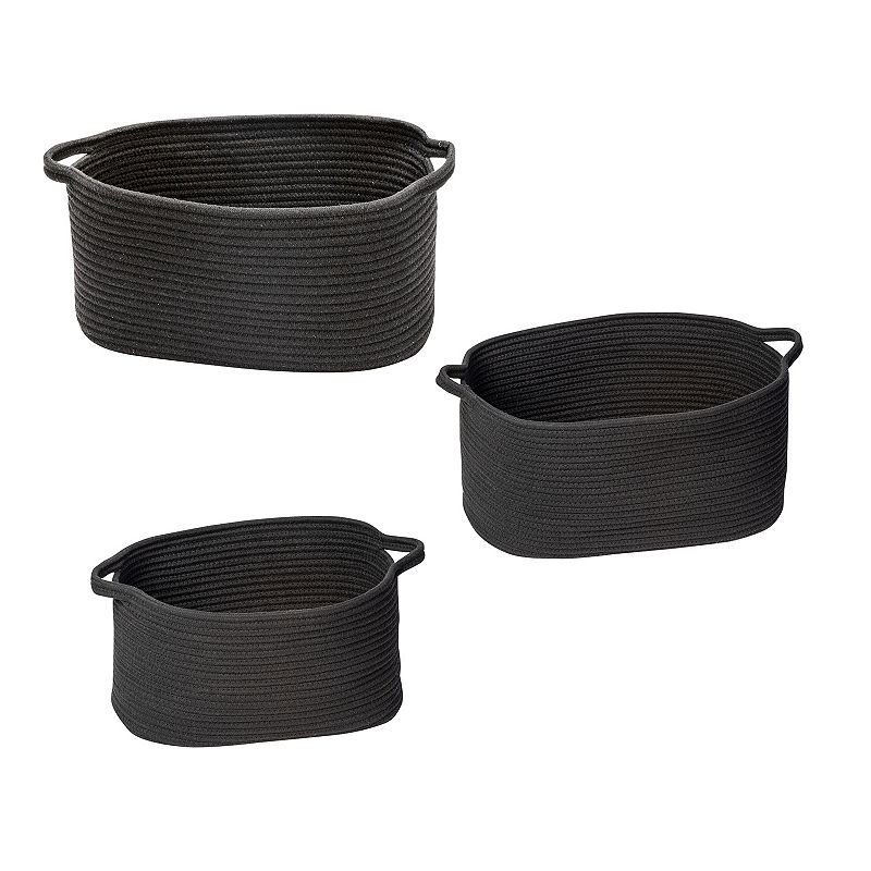Honey-Can-Do Set of 3 Black Cotton Coil Storage Basket SetKeep your house organized and clutter free, thanks to all of the orginizational pieces from Honey-Can-Do. Keep your house organized and clutter free, thanks to all of the orginizational pieces from Honey-Can-Do. Weight capacity: (Large) 47-lbs., (Small/Medium) 22-lbs. Set nests so bins can stack when not in useWHAT'S IHoney-Can-Do
