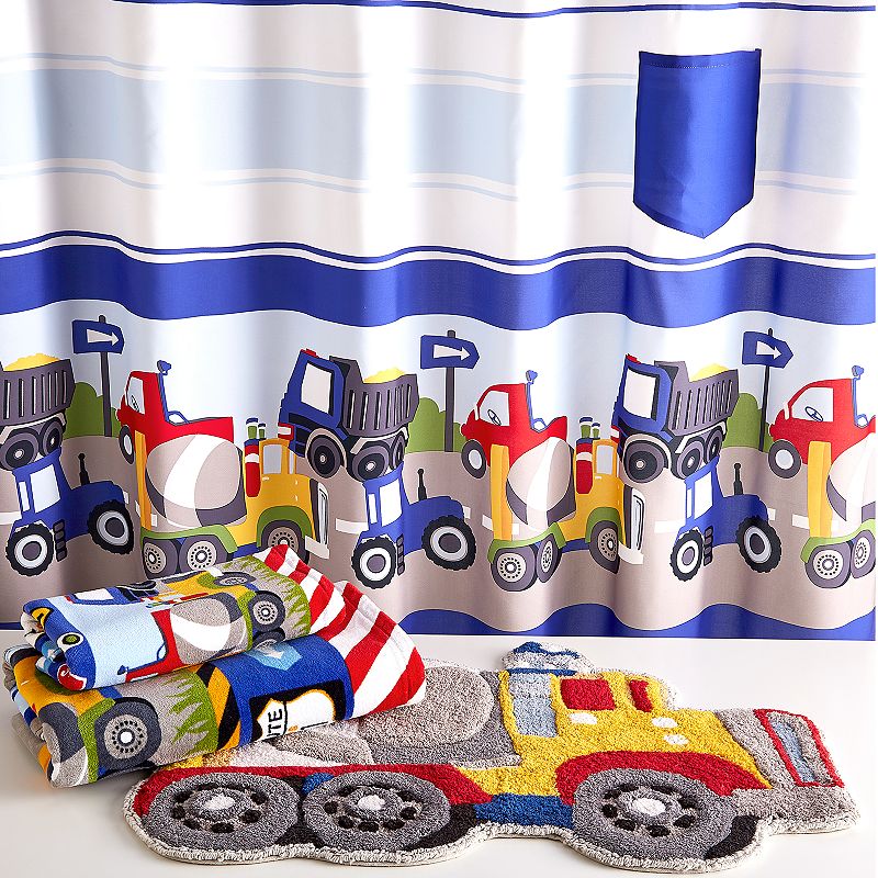 Dream Factory Trains & Trucks 4-piece Bath Set, Size: 4PC SET, GrayYour little one will be excited for bath time with this Dream Factory trains and trucks bathroom set. Your little one will be excited for bath time with this Dream Factory trains and trucks bathroom set. 4-piece set Trains & trucks design WHAT'S INCLUDED Shower curtain: 70'' x 72'' Bath towel: 20'' x 50'' Hand towel: 1Dream Factory