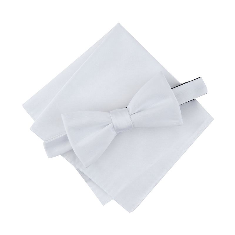Men's Bespoke Pre-Tied Bowtie Set, White Bowtie SetLook your absolute best with this pre-tied bowtie set from Bespoke. Look your absolute best with this pre-tied bowtie set from Bespoke. Includes bowtie and pocket square Solid design Pre-tied for easy on-and-offFABRIC & CARE Polyester Spot clean only Imported Size: One Size. Color: White Bowtie Set. Gender: male. Age GBespoke