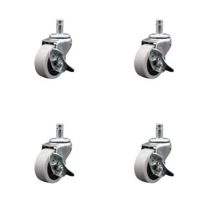 2 Inch Thermoplastic Wheel 7/8 Grip Ring Stem Caster Set with Brakes Set of 4Listing is for four (4) 2" diameter thermoplastic rubber wheels and7/16" diameter x 7/8" length grip ring stem with a side lock brake. Supports up to 80lbs/caster. Service CasterService Caster