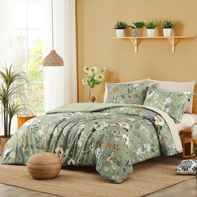 King Size Comforter Set, 7 PCS Green Floral Comforter Set with Flowers Leaves Pattern, SoftFloral Farmhouse & Seersucker DesignCreate a cozy vibe for your bedroom with our green plant King comforter set, framed by branches and dandelion . The exquisite crafting techniques and the premium seersucker fabric are used to display the vivid farmhouse style, not only the lovely scenery you will enjoy, but also theFairub