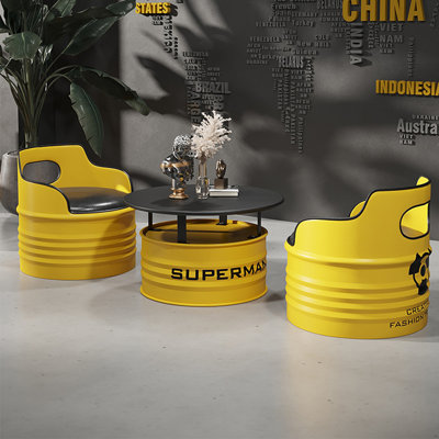 Casual Oil Drum Card Seat Coffee Table Set 27.56 L x 27.56 W Dining SetSafety design: edge wrapping treatment to effectively prevent accidental injury caused by sharp edges, comprehensive consideration of user safety needs. Williston Forge Table Base Color: Yellow, Chair Color: Yellow, Pieces Included: 3Williston Forge