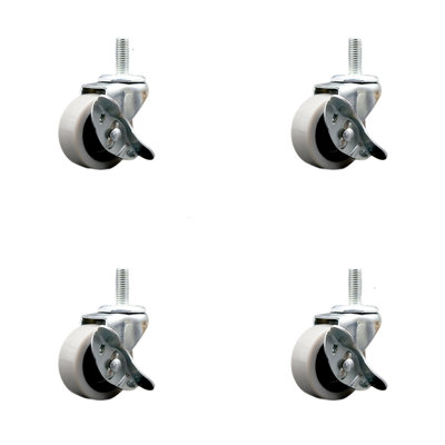 2 Inch Thermoplastic Wheel 10mm Threaded Stem Caster Set with Brakes Set of 4Listing is for four (4) 2" diameter thermoplastic rubber wheels and a 10mm diameter 1.50 TPI x 1.5 threaded stem with a side lock brake. Supports up to 80lbs per caster. Service CasterService Caster