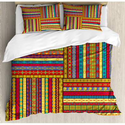 African Set of Ethnic Borders Pattern Old Fashioned Ancient Culture Colorful Artful Print Duvet Cover SetMakeover and refresh your bedrooms every season with just a single touch! Start with this fun and decorative duvet cover sets. These unique designs match well with various color palettes of your rugs, curtains, headboard, furniture, and all other decor accessories. Very durable and sustainable material which will not eAmbesonne
