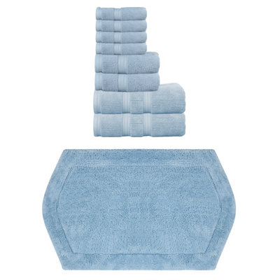 Waterford Collection 100% Soft Cotton 8 Pc Bath Towel Set & 1 Pc Bath Rug, (Set of 9)Transform your bathroom into a spa-like retreat with the Home Weavers Waterford Collection. Crafted from 100% cotton, this luxurious bath set combines comfort and elegance to elevate your daily routine. The tufted bath rug, measuring 24"x40", offers plush softness underfoot while absorbing moisture efficiently. Pair itEss Ess Exports