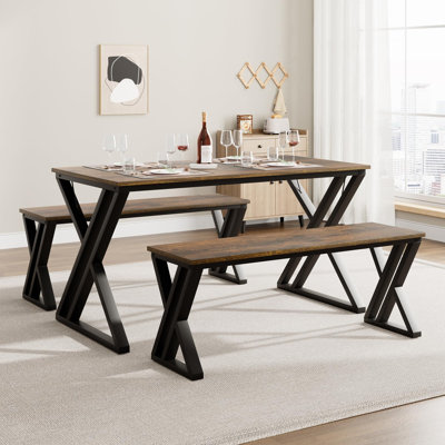 Dining Table Bench Set For 4, Kitchen Table Set With 2 BenchesKitchen Table Chairs Set Of 4The dining room table with bench provide spacious dining space for the whole family. Come with a spacious table (44.88 D x 27.5 W x 29.3 H inches ) and two ergonomic benches (39.3 D x 11.8 W x 17.4 H inches). It can easily carry the weight of delicious food and family. Each bench: 350 lbs,Dakota Fields