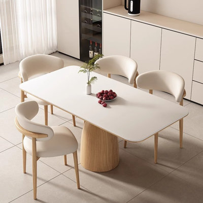 Cream Oak Rectangular Rock-Plate Table Chair Set Dining SetThe Cream Oak Rectangular Rock-Plate Table combines a durable rock-plate top with a thick ash wood frame for ultimate stability. It features rounded, smooth edges, high-quality open-pore finish, and spacious design for comfortable dining. Greyleigh Size: 29.5"H x 70.8"L x 35.4"WGreyleigh