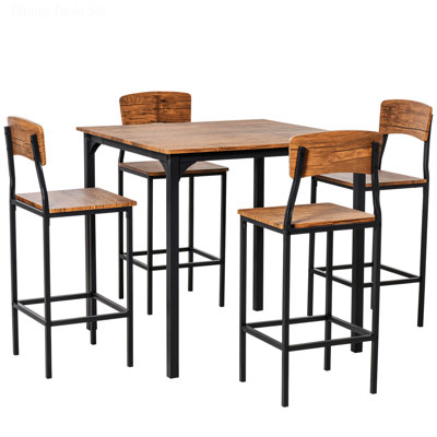 Dining Table Set, Counter Height Bar Table Set For 4, Square Kitchen Table And ChairsThis durable table set has a stable construction that offers exceptional durability and timeless charm. The sturdy table is complemented by matching chairs, all featuring a rustic finish that adds warmth and character to any dining space. The table's solid construction ensures it will remain a durable and welcoming cen17 Stories