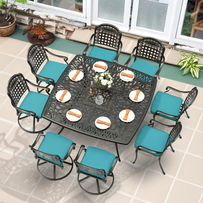 Bloomsbury Market 9-Piece Outdoor Patio Dining Set For 8, All Weather Cast Aluminum Patio Funiture Table And Chairs Set- Large 64" Square Table And 4This MEETWARM patio set includes a 64" curved-edge square dining table, 4 swivel chairs, 4 stationary chairs, 8 cushions, meets all of your outdoor furniture needs, adding style to your space without sacrificing comfort. This patio furniture set is an excellent addition of convenience and comfort to your patio, balconyBloomsbury Market