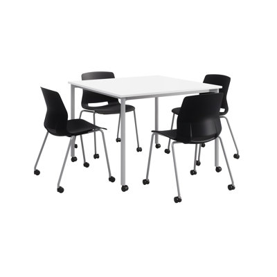 Dailey-" Lola Set 42" L Square Manufactured Wood Breakroom Table and Chair SetThe Dailey dining set is a multifunctional table and chair package whose remarkable strength and weight belies its sleek profile. The simplicity and ease of customization make it an all-around winner. The chairs feature an Injection molded pure virgin polypropylene seat and slotted back. The one-piece construction of tKFI Studios