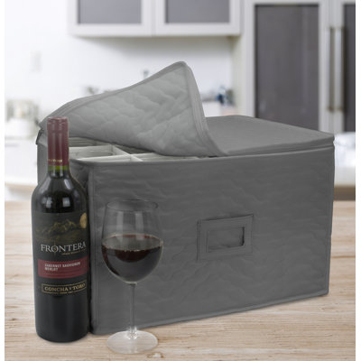 Sorbus 12-Glass Storage Chest Deluxe Quilted Microfiber Stemware with DividersSecure ly store and transport your cherished glassware with this stylish and practical stemware storage solution . Made with a soft, protective fabric, it safeguards each glass from scratches and damage. Ideal for moving, storing, or simply keeping your glassware dust-free. Sorbus Color: GraySorbus
