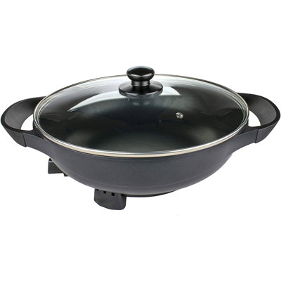Brentwood 9" Electric Wok with Glass LidThe Brentwood skillet has a powerful 1400Watt strength and is perfect for stir fry and more. Featuring an adjustable and removable thermostat, cool-touch handles, and an easy-to-clean non-stick surface. This electric wok has perfect countertop capability and allows you to conveniently cook an all-in-one meal without haBrentwood